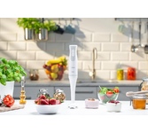 Максимальная мощность 800 Вт, Количество скоростей 20, Материал корпуса пластик, Материал погружной части металл, Плавная регулировка скорости, Длина кабеля питания 1.2 м , Мерный стакан 0.6 л, чаша для измельчения 500 мл (с крышкой) .