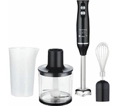 БЛЕНДЕР ПОГРУЖНОЙ( набор 4 предмета), максимальная мощность: 1500 Вт, 2 скорости, включая ТУРБО режим, бесступенчатая регулировка скорости, лезвие блендера из нержавеющей стали: 2 лепестка, измельчитель: 500 мл, мерный стакан: 700 мл, насадка венчик для взбивания , длина кабеля питания: 1 м