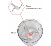 2 скорости работы Обычный и Turbo режим Ножи из нержавеющей стали Металлическая насадка блендер Стакан для смешивания 500 мл Измельчитель 500 мл Венчик Мощность 1200Вт