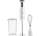 Погружной блендер, мощность 750W, современный эргономичный дизайн, пульсовый режим работы, 2 скорости, лезвия из нержавеющей стали, металлическая нога блендера, венчик для взбивания, насадка для приготовления пюре, чаша с ножом для рубки и измельчения, 400 мл; автоматическая блокировка при неправильно установленной насадке, удобство и простота в обращении и чистке.