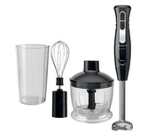 Тип: Погружной Мощность, Вт: 800 Количество скоростных режимов: 2 Режим TURBO: Да Мини-измельчитель: Да Емкость мини-измельчителя, л: 0.6 Венчик для взбивания: Да Мерный стакан: Да Мерный стакан, л: 0.6 Насадка-блендер: Да Материал погружной части насадки-блендера: Нержавеющая сталь STEEL PRO Тип ножа: MULTIEFFECT Материал корпуса: Пластик Длина электрошнура, м: 1.1 Цвет: Черный