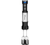 Блендер погружной. Контроллер скоростей с фиксированием (20 скоростей + Turbo). Скорость – до 15 000 об/мин. Технология Silence Balance – уровень шума менее 72 дБ. DMP - двойная защита двигателя (от перегрева, от перегрузки). Система вертикального хранения. Съемный блок лезвий – Ease Wash – для удобной очистки ножей. Насадки в комплекте: насадка – измельчитель (500 мл), насадка – венчик. Чашу измельчителя, кувшин, стальной венчик можно мыть в посудомоечной машине. Максимальная мощность 1 800 Вт.