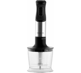 Блендер погружной многофункциональный 4 в 1 Мощность: 1300 Вт Напряжение: 220-240В, 50/60Гц Объем чаши: 0.8л Объем стакана: 0.6л Кол-во скоростей: 12 Импульсный режим (турбо): да LED подсветка кнопок Тип двигателя: DC