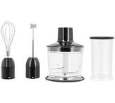 Мощность 1000 Вт, 5 скоростей, Плавная регулировка скорости, Венчик для взбивания, Измельчитель 500 мл, Мерный стакан 600 мл, Лезвие из нержавеющей стали, Турборежим. Цвет Черный