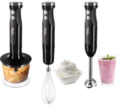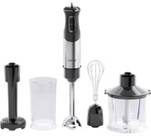 Мощность 1500 Вт Объем 0.65 л, 0.8 л Кол-во скоростей 15 Режимы Турбо Материал корпуса Пластик, Сталь Особенности LED-подсветка, Плавный регулятор мощности, Специальная заточка лезвий Комплект аксессуаров Мерный стакан (800 мл), Насадка для пюре, Насадка-капучинатор, Насадки для взбивания, Насадки для замешивания, Чоппер (650 мл) Тип конструкции Погружной Гарантия 1 год