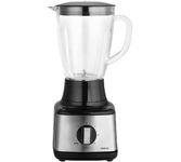 Высокопроизводительный мотор 1000 Вт Плавная регулировка скорости 2 скорости + импульсный режим работы Колка льда 6 ножей из нержавеющей стали Механическое управление Пластиковый корпус Стеклянный кувшин 1,5 л Защитная блокировка Прорезиненные нескользящие ножки Электропитание 220-240 В, ~50/60 Гц