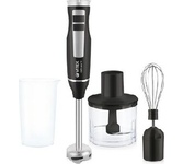 Тип: погружной Мощность: 900 Вт Материал погружной части: нержавеющая сталь Скоростей/режимов: 8, плавная регулировка скорости Насадки: измельчитель, венчик для взбивания Чаша: 0.5 л, пластик