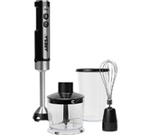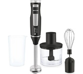 Мощность 900Вт. Количество скоростей 15. Плавная регулировка скорости. Турборежим. Колка льда. Управление механическое. Материал корпуса нержавеющая сталь/пластик. Материал погружной части сталь. Емкость измельчителя 500мл. Емкость мерного стакана 600мл. Венчик для взбивания.