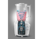 Тип настольный блендер Мощность 600 вт Количество скоростей 2 Импульсный режим есть Плавная регулировка скорости есть Управление механическое Материал корпуса пластик Материал кувшина пластик Емкость кувшина 1,5 л Колка льда есть Отверстие для ингредиентов есть Мерный стакан есть Измельчитель да Нескользящие ножки есть