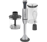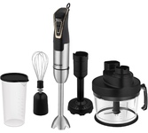Блендер погружной, мощность 1000 Вт, материал корпуса: пластик, материал погруджной части: нержавеющая сталь, в комплекте мерный стакан. Цвет: черный.