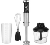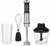 Тип: погружной. Мощность: 1200. Количество скоростей/режимов: 20. Объем чаши: 0.6. Материал погружной части: нержавеющая сталь. Материал чаши: пластик. Электропитание: от сети. Материал ножей: нержавеющая сталь. Мойка в посудомоечной машине: да, можно мыть съемные части. Длина сетевого шнура: 1. Вес товара: 1.33. Габариты упаковки (ед) ДхШхВ: 0.24x0.14x0.24. Вес упаковки (ед): 1.66. Страна производства: Китай. Гарантия: 12 мес.. Размеры (ШхВхГ): 55 х 404 х 55 мм. Цвет: серебристый/черный. Системы защиты: защита от перегрузки (автоматический предохранитель). Функциональные особенности: измельчение твердых продуктов, плавное изменение скорости, регулировка скорости вращения, режим Турбо, функция взбивания. Материал корпуса: металл, пластик. Емкости в комплекте: измельчитель, мерный стакан. Конструктивные особенности: подсветка панели управления. Материал погружной части: нержавеющая сталь. Количество скоростей/режимов: 20. Системы защиты: защита от перегрузки (автоматический предохранитель). Чаша: 0.6 л, пласти