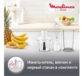 MOULINEX DD642132 погружной блендер,мощность 800Вт,механическое управлениечисло скоростей: 10,мерный стакан объем,мельничка объем,корпус из пластика,плавная регулировка скорости,