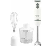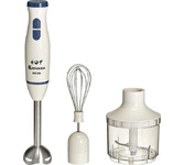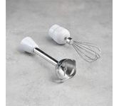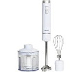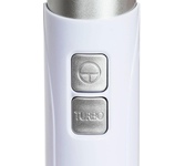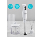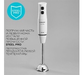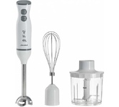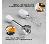 Блендер погружной, максимальная мощность 800 Вт, компактый размер - диаметр корпуса 42 мм, 2 скорости, насадка-блендер из нержавеющей стали, съемная насадка-венчик из нержавеющей стали, мини-измельчитель 500 мл, цвет белый с черным