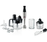 Блендер погружной, мощность 1200 Вт, материал корпуса: металл, материал погружной части: нержавеющая сталь, импульсный режим, защита от перегрева, в комплекте: венчик; измельчитель; крюк для замешивания теста; насадка-шинковка