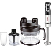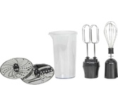Тип устройства погружной (ручной) блендер. Объем шейкера 500 мл. Мощность 800 Вт. Плавная регулировка скорости. Управление одной кнопкой. Турборежим. Импульсный режим. Емкости чаша для измельчения. Шейкер (дорожная чаша) 1 шт. Насадки ножка-блендер, венчики для взбивания, нож для измельчителя, диск для шинковки / нарезки / 3 шт. Питание сеть. Материал ножки-блендера металл.