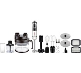 Многофункциональный погружной блендер, максимальная мощность 1800 Вт, 2 копки скорости, режим Турбо, плавная регулировка скорости, погружная часть блендера из нержавеющей стали, лезвия блендера из нержавеющей стали, насадка - битеры, насадка - крючки для