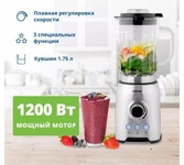 Блендер настольный ZELMER Мощность: 1200Вт; Ёмкость кувшина 1,75 л; 3 скорости + З функции: Турбо режим, Дробление льда, Смузи; Стеклянный кувшин; 6 лезвий из нержавеющей стали; Съемные лезвия для легкой очистки; Противоскользящие ножки.