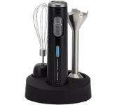 Тип: погружной. Мощность: 700. Количество скоростей/режимов: 2. Измельчитель: в комплекте. Венчик для взбивания: в комплекте. Материал погружной части: нержавеющая сталь. Электропитание: от аккумулятора. Регулировка скорости вращения: есть. Материал ножей: нержавеющая сталь. Мерный стакан: есть. Материал корпуса: пластик. Особенности: До 30 минут автономной работы. Время зарядки аккумулятора 5 часов. Чаща для измельчения 0,5 литра. Мерный стакан с крышкой объемом 0,7 литра. Аккумулятор: Li-ion 2000 мАч, 11,1 В.. Габариты упаковки (ед) ДхШхВ: 0.25x0.31x0.34. Вес упаковки (ед): 1.83. Гарантия: 24 мес.. Цвет: черный. Мощность: 700 Вт. Материал погружной части: нержавеющая сталь. Тип: погружной. Насадки: измельчитель, венчик для взбивания. Скоростей/режимов: 2
