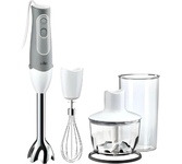 "Тип погружной Цвет белый Тип управления электромеханический Номинальная мощность 1600 Вт Максимальная мощность 1800 Вт Материал корпуса металл пластик Скорость работы в основном режиме 10000 - 15000 об/мин Режим турбо есть Скорость работы в турборежиме 15000 об/мин Плавная регулировка скорости есть Скорости работы плавная регулировка скорости Чаша измельчителя да Мерный стакан да Материал погружной части металл Объем чаши измельчителя 500 мл Объем мерного стакана 600 мл Объем стакана для смешивания 600 мл Цвет корпуса белый Насадка-блендер есть Насадка-венчик есть Насадка-пюре есть Форма ножа 4-лепестковый с титановым покрытием Защита от поражения электрическим током класс II Защита от перегрева есть Защита от перегрузки есть Индикация светодиодная Длина шнура электропитания 1,1 м Напряжение 220–240 В, 50/60 Гц Габаритные размеры 60 ? 430 ? 67 мм Вес нетто 1,6 кг ± 3% Комплектация блок электродвигателя насадка-блендер насадка-венчик переходник для насадки-венчика стакан для смешивания насадка для приготовлен