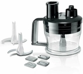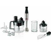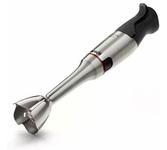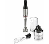 Блендер погружной, мощность 1200 Вт, материал корпуса: металл, материал погружной части: нержавеющая сталь, импульсный режим, защита от перегрева, в комплекте: венчик; измельчитель; крюк для замешивания теста; насадка-шинковка