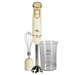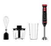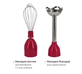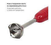 Мощность 1000Вт, 3 в 1 блендер/миксер/капучинатор + мерная чаша в комплекте, 2 скоростных режима + плавная регулировка скорости, погружная насадка из стали + стальные лезвия.