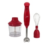 Максимальная мощность: 500Bт; 3 в 1: насадка блендер, насадка-венчик, насадка-измельчитель; Корпус блендера из Высококачественный АБС-пластик; Количество скоростей: 2 режим скорост; Шнур электропитания: 1 м; Защита двигателя от перегрузки: термостат (автоотключение до полного остывания двигателя); Чаша для резки (500мл); Мерный стакан (700мл); Номинальное напряжение: 220 – 240в; Вес нетто/ брутто (кг) : 1,06 / 1,18 кг; Габариты упаковки (ШхГхВ): 209х149х215 мм