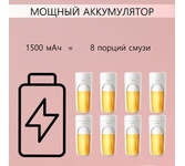 Можно приготовить не только свежий сок, молочные коктейли, смузи, но и супы-пюре. Блендер Deerma Juice blender NU30 станет отличным помощником на пути к цели улучшить здоровье и фигуру. Не нужно беспокоиться о внешних розетках и проводах, блендер Deerma Juice blender NU30 можно использовать без проводов благодаря мощному встроенному аккумулятору. Размер прозрачной чаши аналогичен размеру стакана объемом 300 мл, благодаря этому он является одним из самых портативных в своем классе. Время приготовления смузи займет всего 45 секунд. Блендер Deerma Juice blender NU30 совместим с любым источником питания с портом USB, будь то автомобильный адаптер, компьютер или мобильный блок питания. Блендер Deerma Juice blender NU30 перестанет работать при открытии крышки, автоматически отключится при чрезмерной зарядке. Бледер выполнен из экологичных материалов - можно смело употреблять приготовленные в нём напитки и не переживать за безопасность своего организма. Установленный в блендер Deerma Juice blender NU30 аккумулятор е