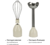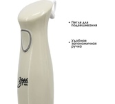 2 скорости работы Обычный и Turbo режим Регулятор скорости Ножи из нержавеющей стали Металлическая насадка блендер Стакан для смешивания 600 мл с крышкой Венчик Вспениватель молока Петля для подвешивания Мощность 600 Вт Длина шнура 1,5 м