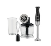 Тип: Погружной Мощность, Вт: 1100 Количество скоростных режимов: 25 Режим TURBO: Да Мини-измельчитель: Да Емкость мини-измельчителя, л: 0.6 Венчик для взбивания: Да Мерный стакан: Да Мерный стакан, л: 0.6 Материал погружной части: Металл Цвет: Черный