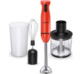 Тип погружной Мощность 850 Вт Регулировка скорости вращения Количество скоростей / режимов 2 Мерный стакан Электропитание от сети Цвет красный/черный Материал корпуса пластик Материал ножей нержавеющая сталь Материал погружной части нержавеющая сталь Венчик для взбивания Измельчитель в комплекте Нескользящая основа Срок гарантии 12 мес.