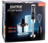 CENTEK CT-1347 BLACK Мощность800 Вт Мерный стакан600 мл Чоппер600 мл 2 режима работы Съемная насадка и венчик Лезвия из нержавеющей стали Специальная заточка лезвий DC мотор Комплект аксессуаров: Чоппер Миксерный венчик Блендерная насадка Мерный стакан