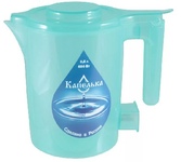 объем 0.5 л, мощность 800 Вт, нагревательный элемент – открытая спираль, длинна шнура - 0,7м материал корпуса: пластик Производство - Россия зеленый