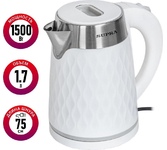 SUPRA KES-1798 Основные характеристики: Максимальный объем,1,7л, тип нагревательного элемента - закрытый. Способ открывания крышки -вручную.Подставка с вращением на 360 - есть.Длина сетевого шнура, 0,75м Функции: Отключение при закипании,Отключение при снятии,Отключение при отсутствии воды. Комплектация: чайник, гарантийный талон, инструкция на русском языке Материал корпуса пластик (наружная часть), нержавеющая сталь (внутренняя часть) Цвет белый Энергопотребление Потребляемая мощность, Вт. 1500 Электропитание, в., Гц.220-240, 50