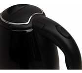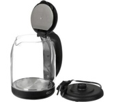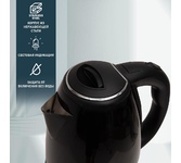 Максимальный объем, л. 1,8. Способ открывания крышки вручную. Подставка с вращением на 360? есть. Хранение сетевого шнура в подставке есть. Отключение при закипании есть. Отключение при отсутствии воды есть. Индикатор уровня воды есть. Индикатор включения есть. Подсветка есть. Материал корпуса стекло. Цвет черный. Потребляемая мощность, Вт. 1500. Электропитание, В., Гц. 220-240, 50.