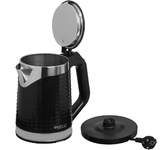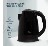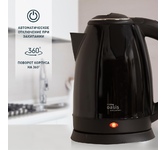 Чайник из нержавеющей стали с закрытым нагревательным элементом. Объем 2,0л. Мощность1800Вт. Отключение при закипании/без воды, световой индикатор работы, вращение на 360°. Цвет: черный.