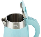 HOMESTAR HS-1021 (1,7 л) голубой Объем, л 1.7 Мощность (Вт) 1500 Материал корпуса нержавеющая сталь/пластик Фильтр от накипи есть Защита от включения без воды есть Подсветка воды нет LED-индикатор работы да Тип управления механический Цвет корпуса голубой Нагревательный элемент закрытый (спираль) Вес нетто, кг 0,976