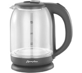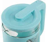 Объем 1,5 л Корпус из термостойкого стекла Шкала уровня воды Внутренняя подсветка Закрытый нагревательный элемент из нержавеющей стали Поворот на подставке 360° Защита от работы без воды Автоматический выключатель Мощность 1500 Вт