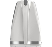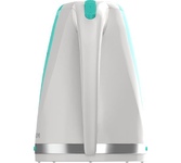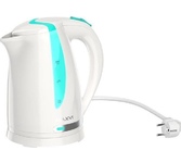 Мощность 2200 Вт, 1.7 литра, пластиковый корпус, LED-подсветка, кнопка открытия крышки, подставка с вращением 360 градусов, шкала уровня воды, автоотключение, съёмный фильтр от накипи, скрытый нагревательный элемент.