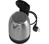 Чайник, Мощность: 1800 Вт, Oбъем: 1.7 л, Корпус из нержавеющей стали, Дисковый нагревательный элемент, Индикатор уровня воды, Индикатор включения, Фильтр против накипи, Автоотключение при закипании/отсутствии воды/ снятии, Отсек для хранения электрошнура в подставке, Вращающийся корпус на 360°. Напряжение 220-240 В, 50-60 Гц