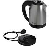 Мощность 1500 Вт, 1.8 литра, стальной корпус, подставка с вращением 360 градусов, световая индикация, автоотключение, скрытый нагревательный элемент.