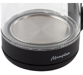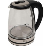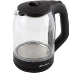 Цвет Черный с основанием из нержавеющей стали Материал полости Термостойкое стекло Параметры электросети, В/Гц 220/50 Мощность, Вт 2000 Объем, л 2 Автоотключение Защита от включения без воды 360° поворот корпуса LED подсветка