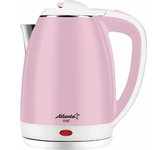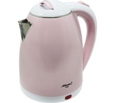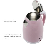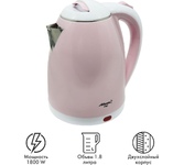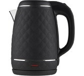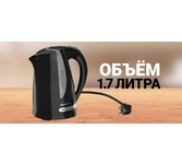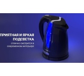 Мощность 2200 Вт, 1.7 литра, пластиковый корпус, LED-подсветка, кнопка открытия крышки, подставка с вращением 360 градусов, шкала уровня воды, автоотключение, съёмный фильтр от накипи, скрытый нагревательный элемент.