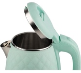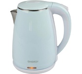 Корпус из первичного пластика.Защита от включения без воды.Автоматический и ручной выключатель с индикацией работы чайника.Поворот на подставке 360° Автоматическое отключение при снятии с подставки.Дисковый нагревательный элемент из высококачественной нержавеющей стали.Отсек для хранения шнура Объем 1,7 л. Размер прибора: 210х150х230 мм.