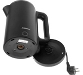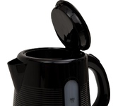 Объем 1,7 л Мощность 2200 Вт Автоотключение Защита от включения без воды 360° поворот корпуса Световая индикация Съемный и моющийся фильтр Кнопочное открытие крышки/ Цвет Черный Материал полости Пищевой пластик Параметры электросети, В/Гц 220-240/50-60