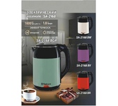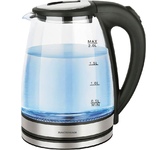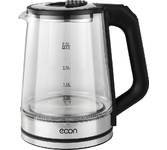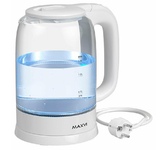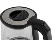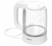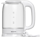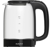 Мощность 1850-2200 Вт, 1.7 литра, стеклянный корпус, LED-подсветка, подставка с вращением 360 градусов, шкала уровня воды, автоотключение, скрытый нагревательный элемент.