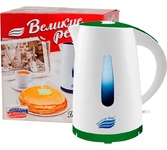Корпус из первичного пластика.Защита от включения без воды.Автоматический и ручной выключатель с индикацией работы чайника.Поворот на подставке 360° Автоматическое отключение при снятии с подставки.Дисковый нагревательный элемент из высококачественной нержавеющей стали.Отсек для хранения шнура Объем 1,7 л.
