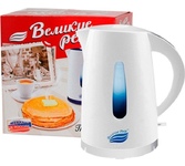 1.8 л, 1500-1800 Вт, дисковый нагреватель, двухслойный корпус, эффект термоса (быстрее нагревается и дольше удерживает тепло), отключение при закипании/без воды, внутр.индикатор уровня воды, световой индикатор работы, вращение на 360°