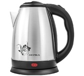 Чайник 1,8 л. Корпус из нержавеющей стали. Возможность вращения чайника на 360°. Автоматическое отключение при закипании воды. Отключение при недостаточном количестве воды. Индикатор вкл/выкл