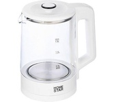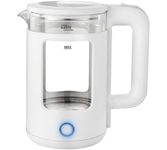 Объем 1,7 л Номинальная мощность 2200 Вт Описание Закрытый нагревательный элемент из нержавеющей стали Корпус из жаропрочного стекла Вращение корпуса на 360° Шкала уровня воды Внутренняя LED-подсветка Съемный фильтр Удобное хранение шнура Цвет: белый Многоуровневая защита: автоматическое отключение при закипании отключение при снятии чайника с базы отключение при недостаточном количестве воды