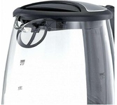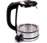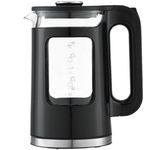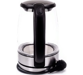 Объем 1,7 л Номинальная мощность 2200 Вт Описание Закрытый нагревательный элемент из нержавеющей стали Корпус из жаропрочного стекла Вращение корпуса на 360° Шкала уровня воды Внутренняя LED-подсветка Съемный фильтр Удобное хранение шнура Цвет: черный Многоуровневая защита: автоматическое отключение при закипании отключение при снятии чайника с базы отключение при недостаточном количестве воды